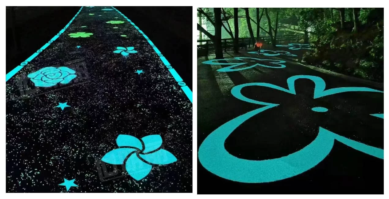 In decorative design, luminous paints and tiles are popular choices for outdoor landscapes, swimming pools, and interior design accents. These materials not only enhance aesthetic appeal but also contribute to safety by marking steps or edges at night.
